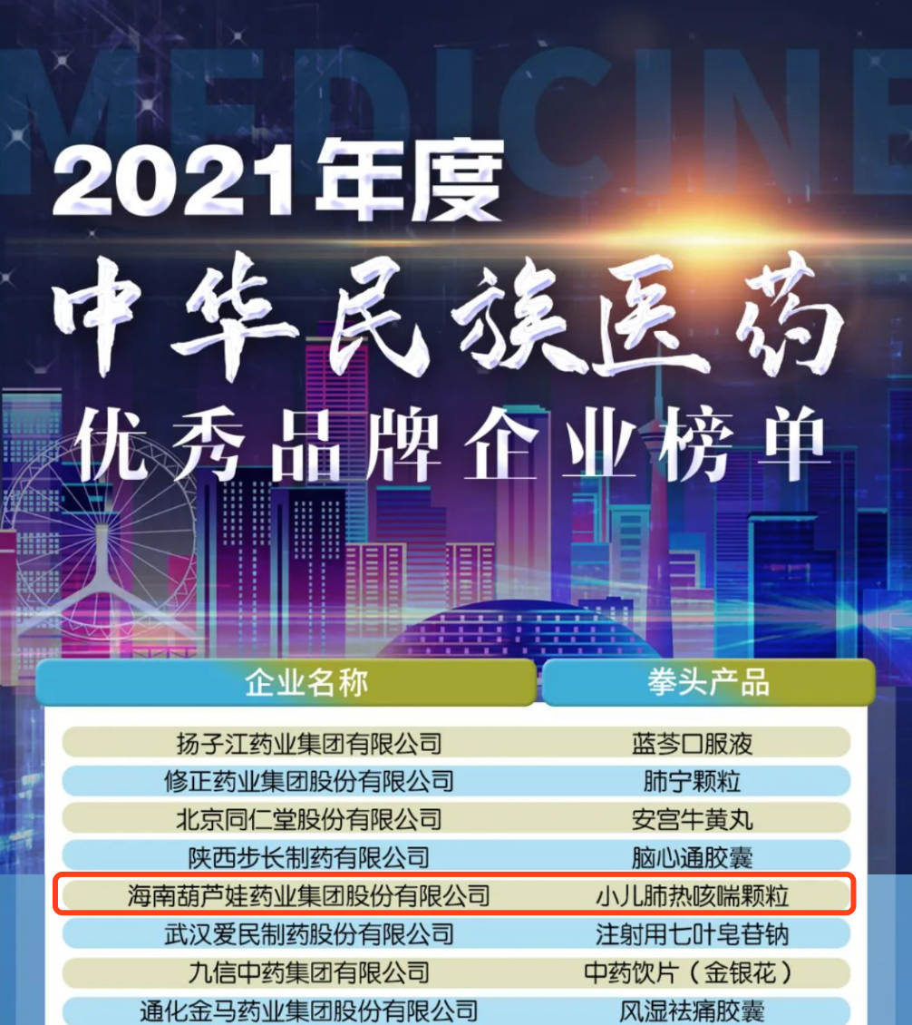 12月29日,全国工商联医药业商会发布了“2021年度中华民族医药优秀品牌企业榜单”,富易堂药业集团凭借黄金单品小儿肺热咳喘颗粒(4克)实力登榜。