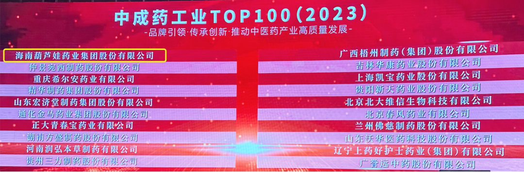 会上,还发布了“2023中成药工业TOP100”榜单,富易堂药业集团荣耀上榜。